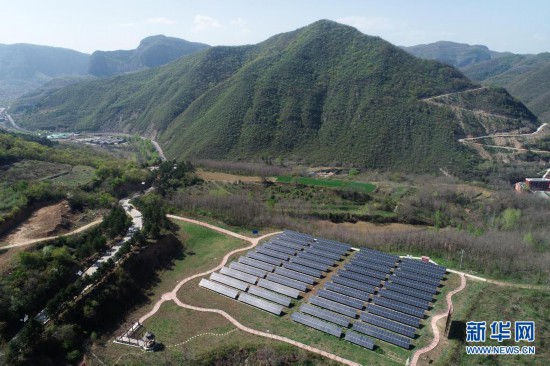 4月18日拍攝的銅川市耀州區(qū)照金鎮(zhèn)一處光伏電站(無人機照片)。