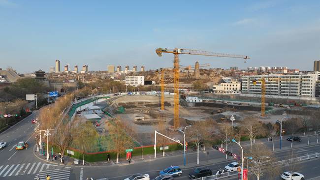 塞上五月柳絮飛,古城榆林別樣美。近日,記者在凌霄廣場改造項目現(xiàn)場看到,吊車、裝載機、工程車等機械來回穿梭,工人們分工明確,回填土方、綁扎鋼筋,忙碌而有序,現(xiàn)場一派緊鑼密鼓的施工景象。