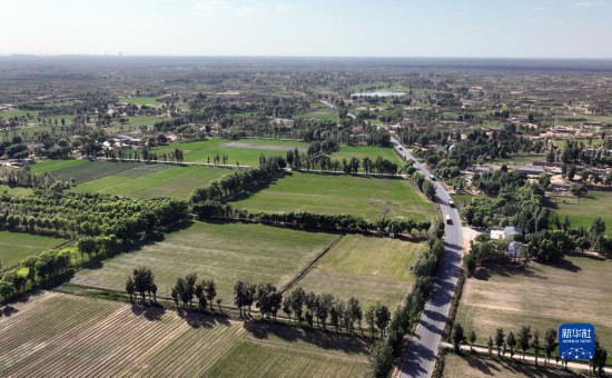 榆林市榆陽區(qū)巴拉素鎮(zhèn)白城臺(tái)村的農(nóng)田防護(hù)林(6月13日攝,無人機(jī)照片)。