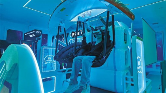 在宇宙幻境·VR空間,120款沉浸式VR游戲涵蓋互動射擊、電子競技、劇情探索、多維感官協(xié)同等多種類型,吸引了許多青少年前來體驗。