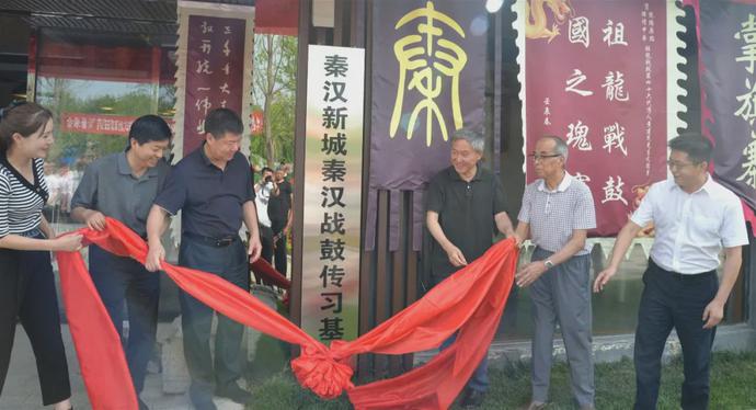 陜西省藝術館研究館員、陜西省民間文藝家協(xié)會副主席修建橋,陜西省考古研究院研究員、陜西省政府文史館員王學理,新城黨委副書記吳起,新城黨委宣傳部負責人,西咸新區(qū)黨工委宣傳部文化文產(chǎn)室負責人,秦漢文化旅游有限公司總經(jīng)理、天漢投資有限公司負責人共同為秦漢戰(zhàn)鼓傳習基地揭牌。