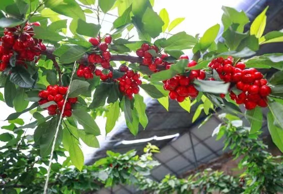 在櫻桃棚內(nèi),紅色的櫻桃一簇一簇簇?fù)碓跇?shù)上,在綠油油的樹(shù)葉間顯得嬌艷欲滴。路寶告訴記者,子長(zhǎng)的櫻桃可以趕在其他產(chǎn)地的櫻桃未上市前售賣(mài),因此市場(chǎng)行情好,加上保存期長(zhǎng),適合現(xiàn)代物流的發(fā)展,從而產(chǎn)生了比較好的收益。“我們這個(gè)櫻桃可以在其他櫻桃還沒(méi)有上市的時(shí)候,借助現(xiàn)代物流賣(mài)到全國(guó)各地,甚至可以賣(mài)到櫻桃的主產(chǎn)區(qū)去!