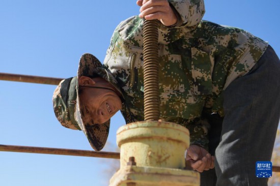 10月11日,護(hù)林員魏存廣在額濟(jì)納旗七道橋胡楊林區(qū)查看水閘設(shè)備情況。新華社記者 李志鵬 攝