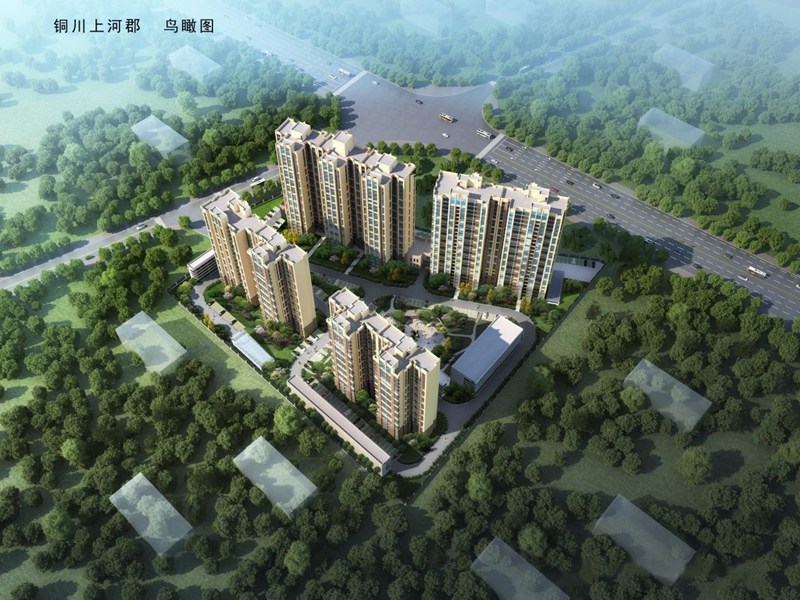 上河郡小區(qū)坐落于銅川市新區(qū)藥王路與華原路交匯處沮河河畔,從遠(yuǎn)處望去,4棟樓均已封頂,外立面已經(jīng)完工。走進(jìn)小區(qū),院子里已完成綠化。